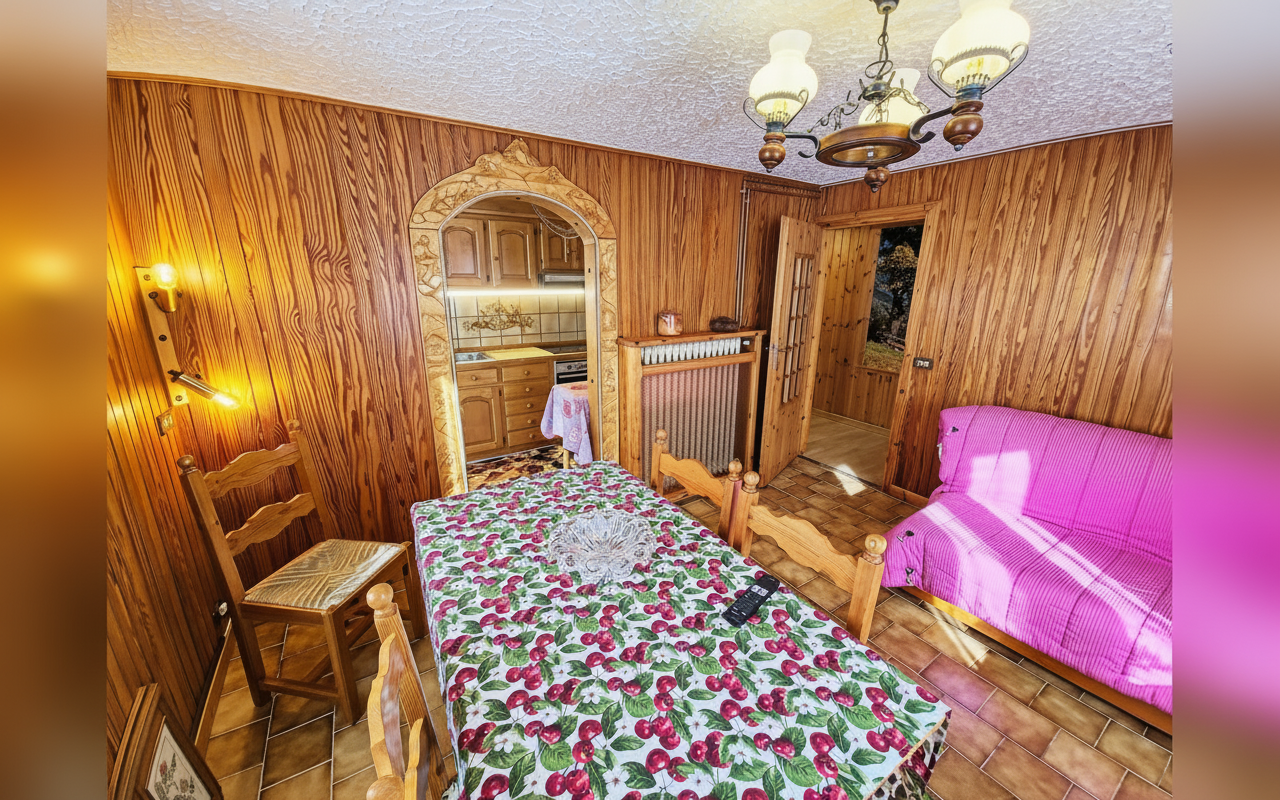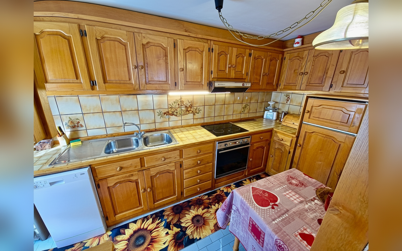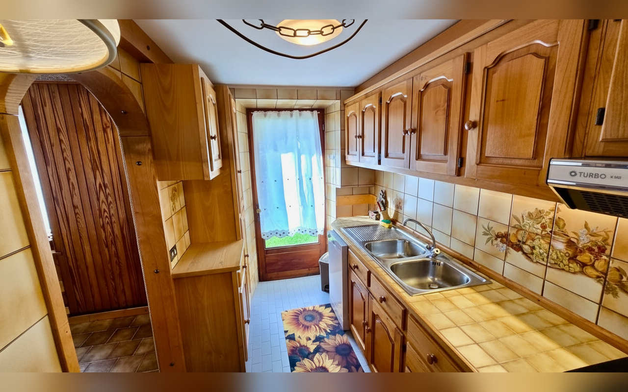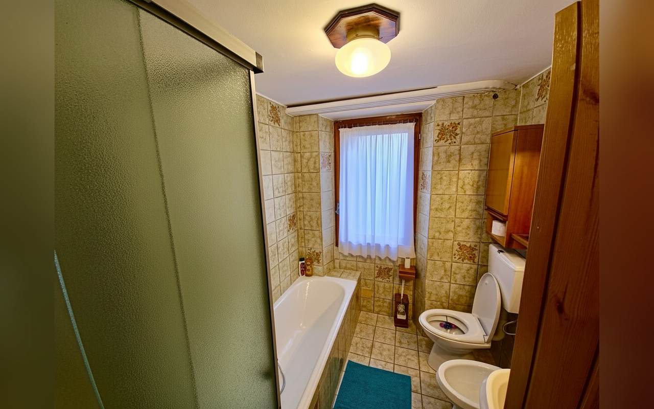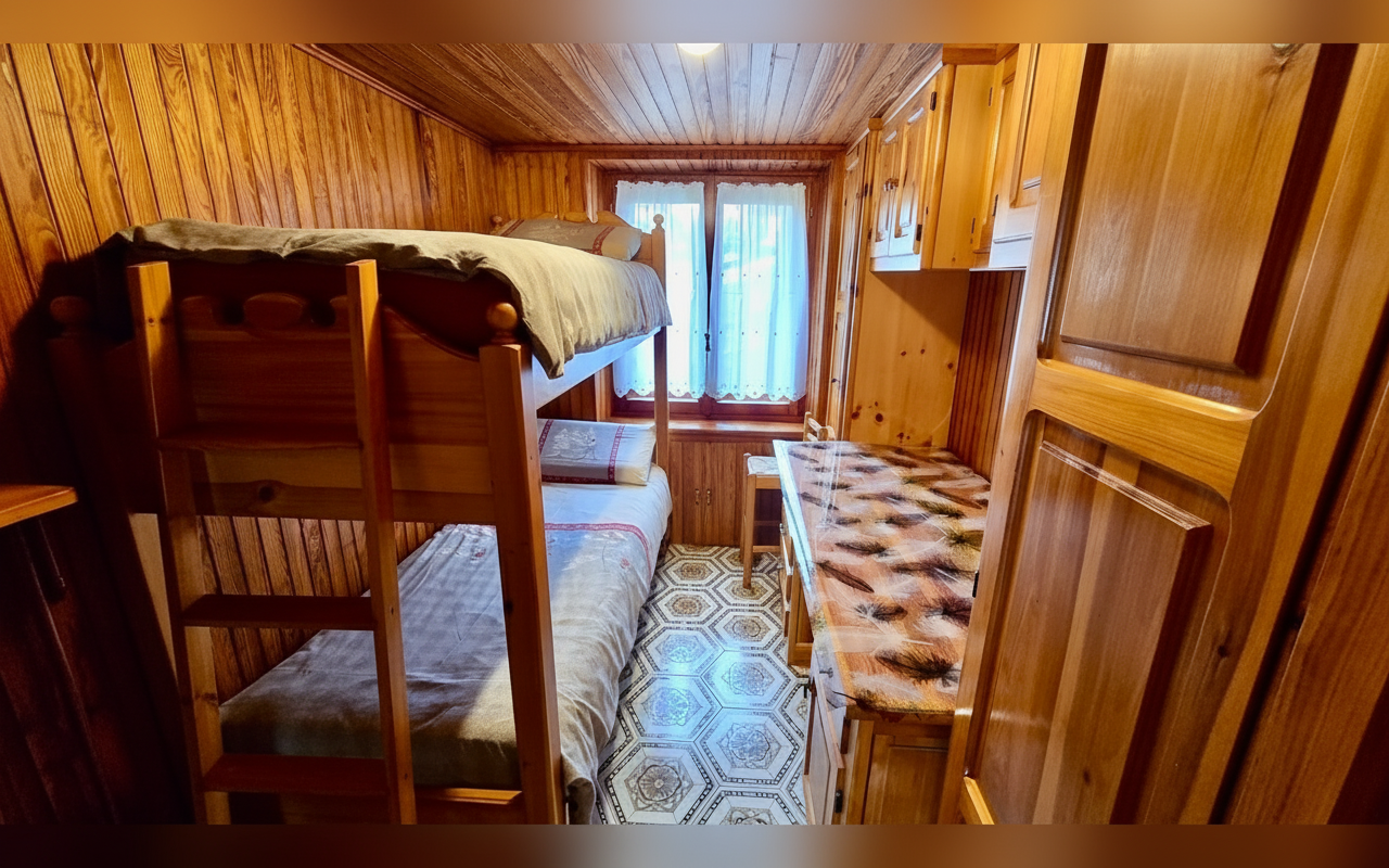 Elegante appartamento di 120 mq con tre camere matrimoniali, soggiorno con divano letto, cucina completa e bagno. Perfetto per gruppi fino a 7 persone, offre spazi ampi e luminosi con una terrazza privata per godere della vista sulle montagne.